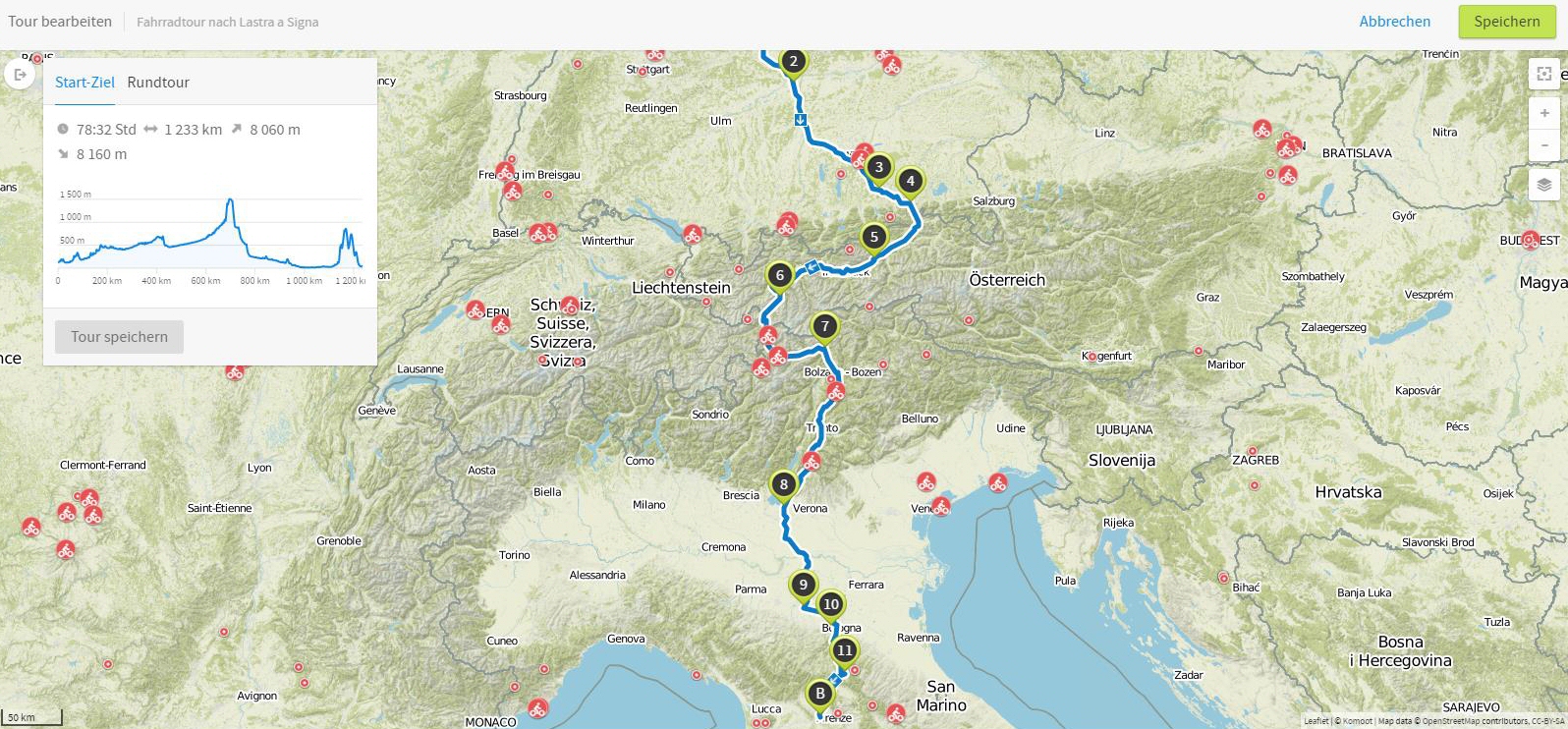 Detailroute Fahrradtour Münster - Lastra a Signa