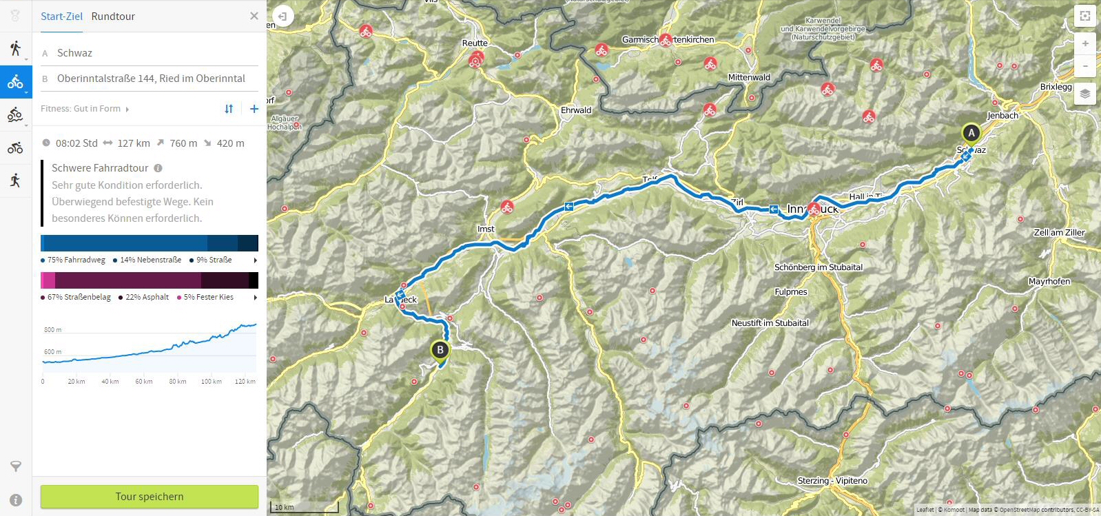 Schwaz – Ried im Oberinntal 127 km 760 hm